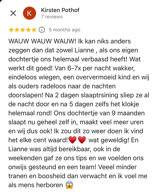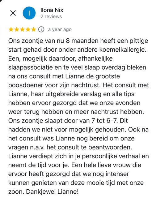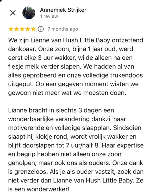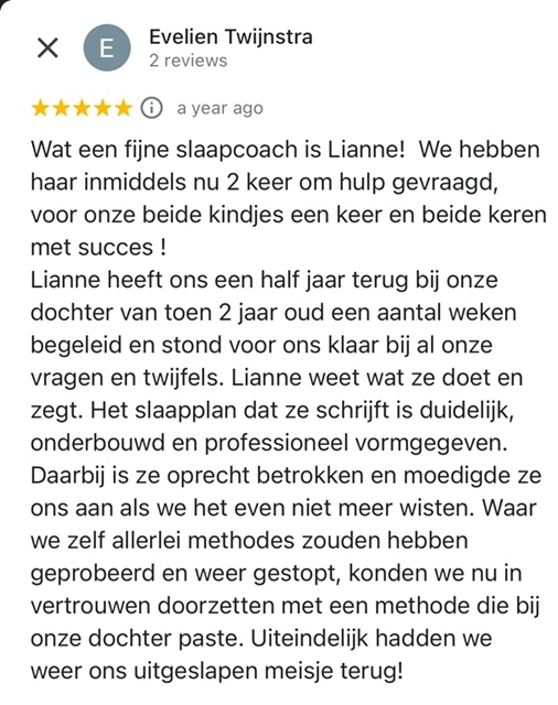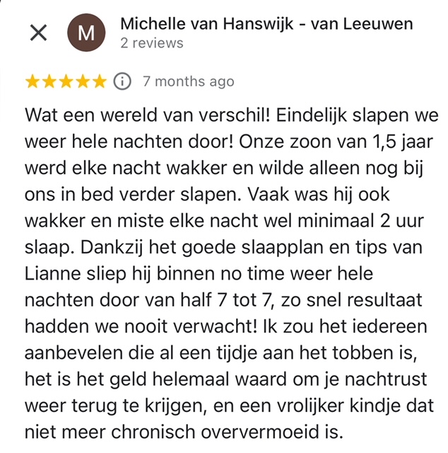 Ik ben jou, maar dan 3 jaar in de toekomst. Wacht niet, net als ik, maandenlang af, maar start NU met werken aan jullie ideale slaapsituatie. In twee weken (of minder, who knows!) voel jij je weer als herboren.